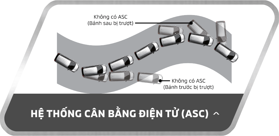 Hệ thống cân bằng điện tử (ASC) sử dụng các cảm biến để phân tích chuyển động và độ trượt của xe. Bằng cách kiểm soát công suốt động cơ và lực phanh từng bánh xe riêng biệt, hệ thống ASC giúp duy trì sự ổn định của xe ngay cả trong điều kiện trơn trợt
