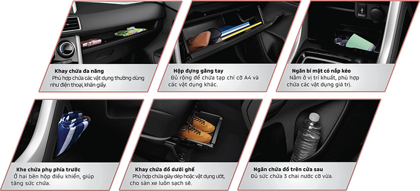Với 45 ngăn chứa tiện ích thông minh, ứng dụng triết lý “OMOTENASHI” của Nhật Bản, lấy người dùng làm trung trâm, đem lại sử thoải mái từ những chi tiết nhỏ nhất.