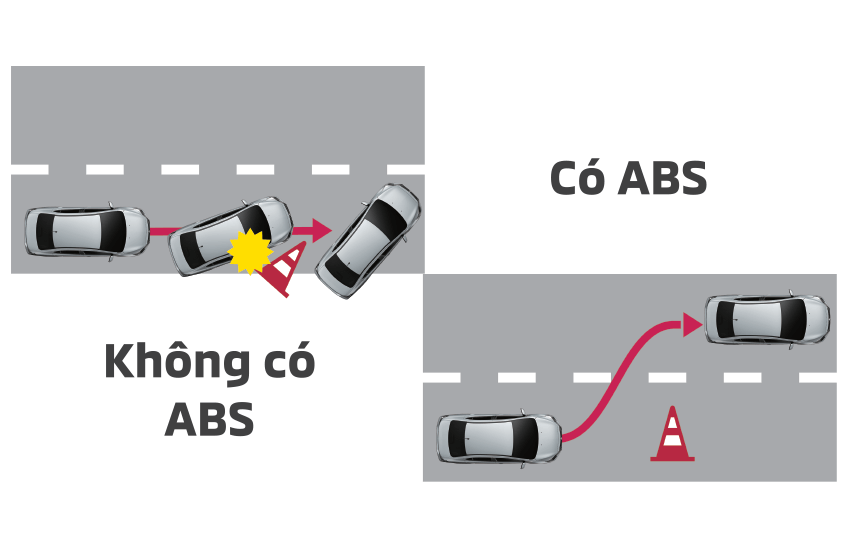 Giúp chống hiện tượng bó cứng phanh đồng thời phân phối lực phanh tối ưu giúp làm chủ tay lái khi phanh gấp trên đường trơn trượt đồng thời rút ngắn quãng đường phanh.