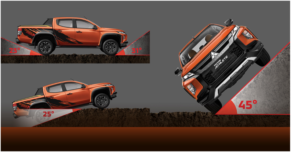 Dễ dàng vượt mọi địa hình hiểm trở với khoảng sáng gầm 220mm & các góc thoát lớn.