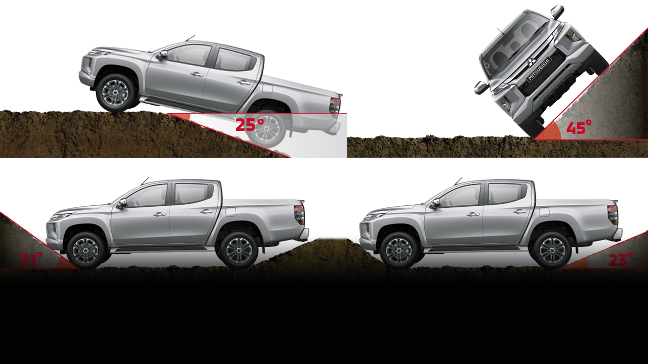 Với khoảng sáng gầm xe lên đến 220mm cùng thiết kế các góc thoát lớn giúp Triton dễ dàng vượt mọi địa hình hiểm trở