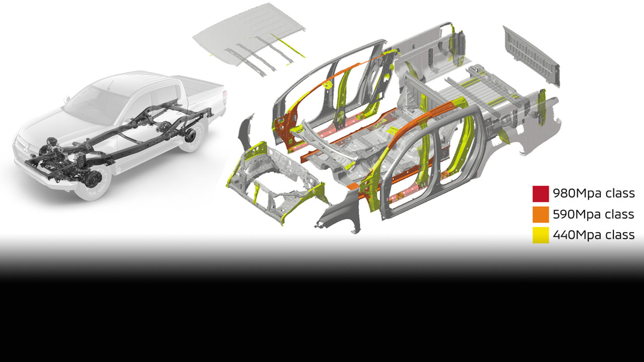 Công nghệ khung xe đặc trưng của Mitsubishi mang đến khả năng hấp thụ hiệu quả năng lượng va chạm từ mọi hướng và phân tán lực tác động giúp bảo vệ hành khách